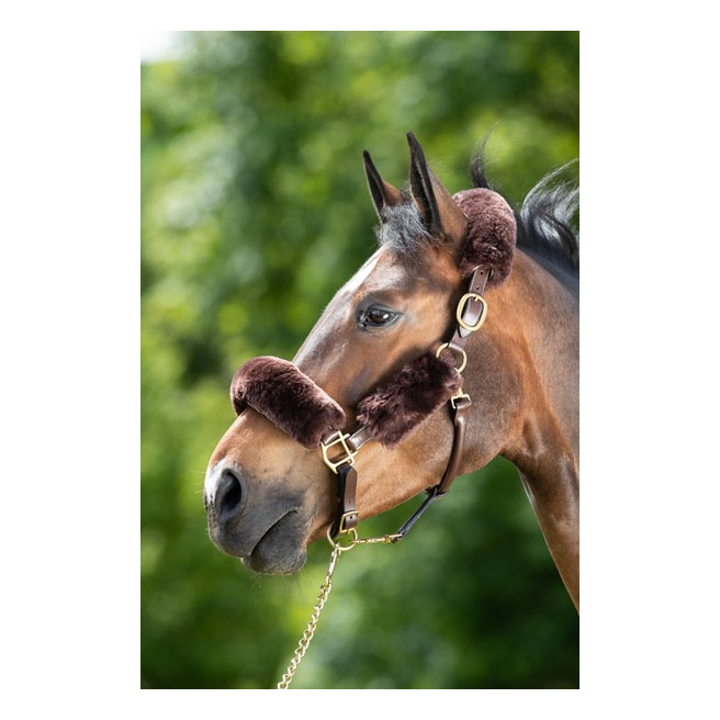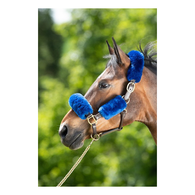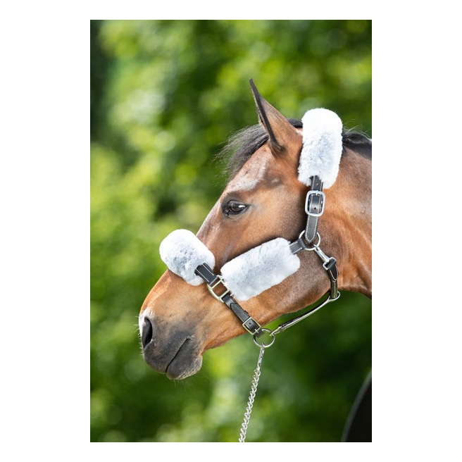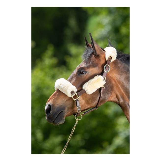 Ce set de protections de licol en mouton véritable comprend 4 pièces en fourreau avec un velcro sur toute la longueur: