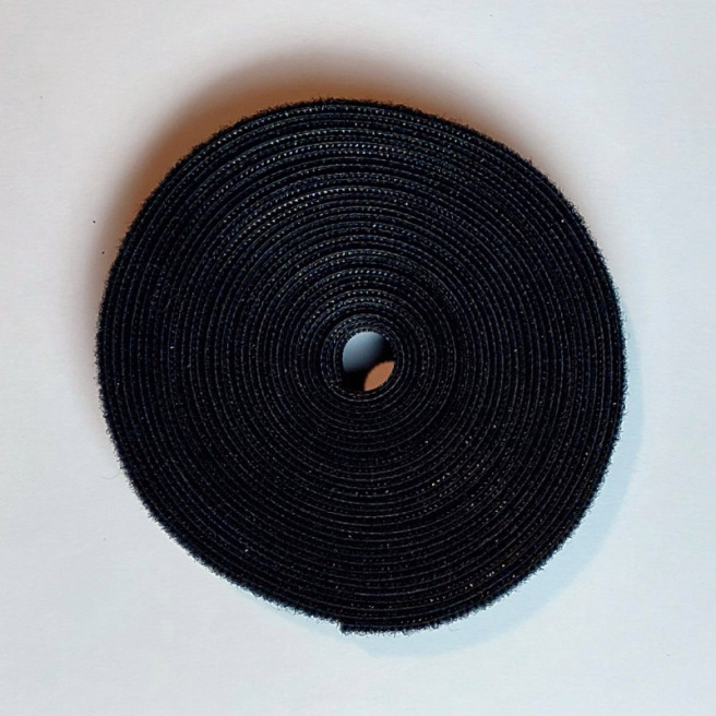 - 5m de Velcro® tout doux dos-à-dos (c'est-à-dire recto-verso pour les deux faces du scratch) de 16mm de large noir,