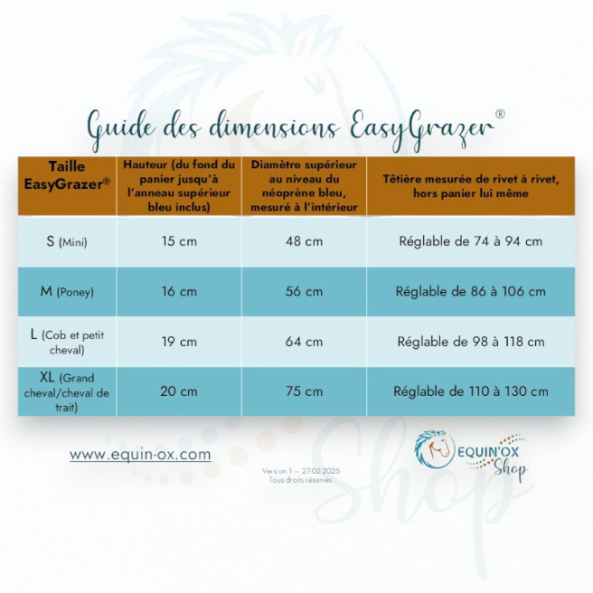 Il existe 4 tailles de panier EasyGrazer® : S, M, L et XL.