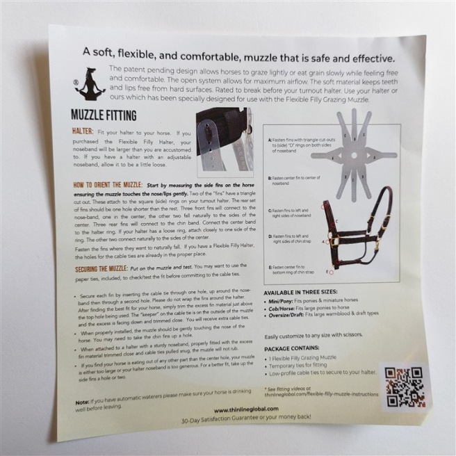 Le panier anti-fourbure ThinLine® permet de limiter l'ingestion d'herbe pour les chevaux et poneys en prairie ayant une tendance à l'obésité. Il est souple, léger et confortable, ce qui permet de gêner le cheval le moins possible. Ce panier est bien supporté par la majorité des chevaux. Par sa transparence, il permet également un effet visuel plus doux, tant pour les cavaliers que pour les autres chevaux. Il permet au cheval de continuer à exprimer ses comportements naturels. Par ailleurs il permet au cheval de boire dans la majorité des abreuvoirs sans se coincer. Il est également très sécuritaire puisque tant les serflex ThinLine® qui le maintiennent que le licol ThinLine® sont prévus pour céder si le cheval reste accroché quelque part.
