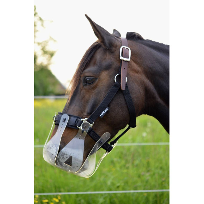 Le panier ThinLine® est souple et s’attache directement sur le licol. Cette configuration limite fort les risques de blessures liés au panier.
