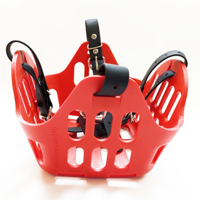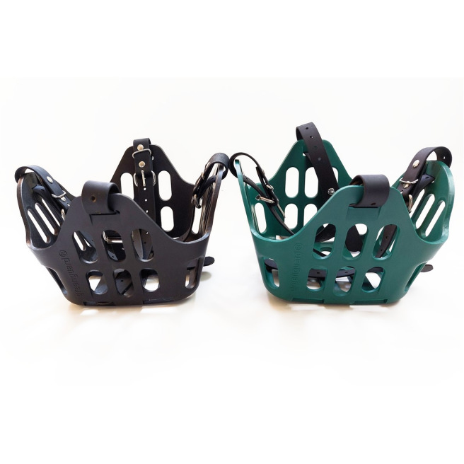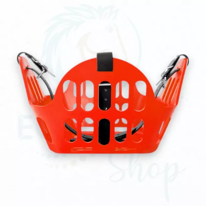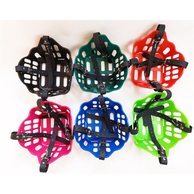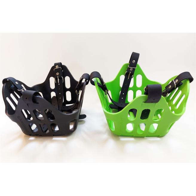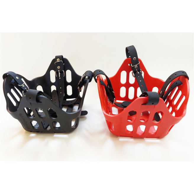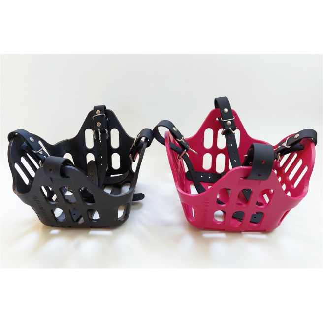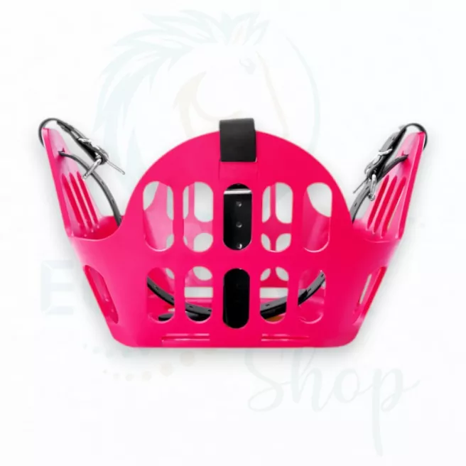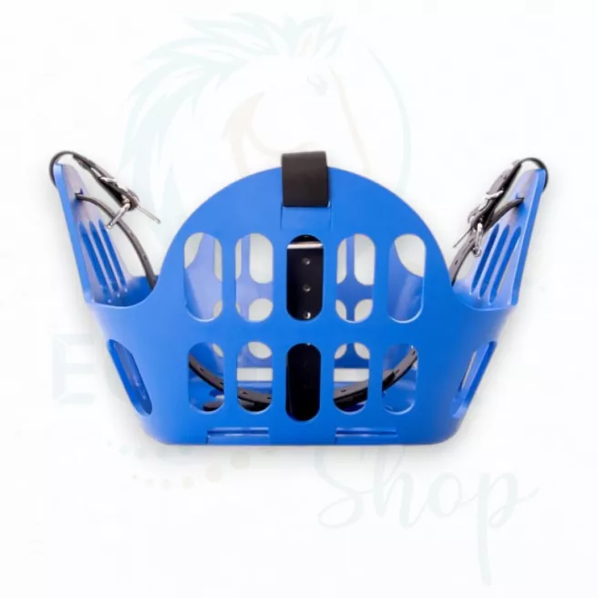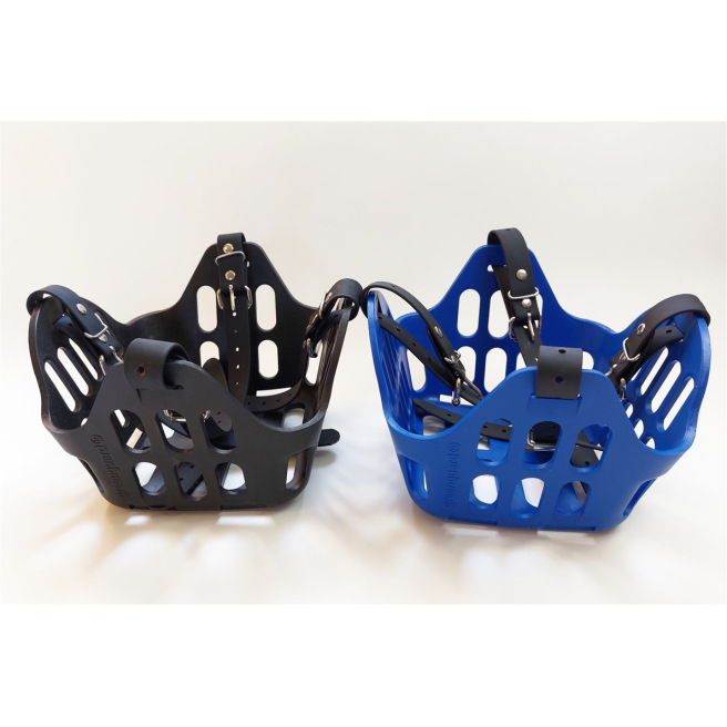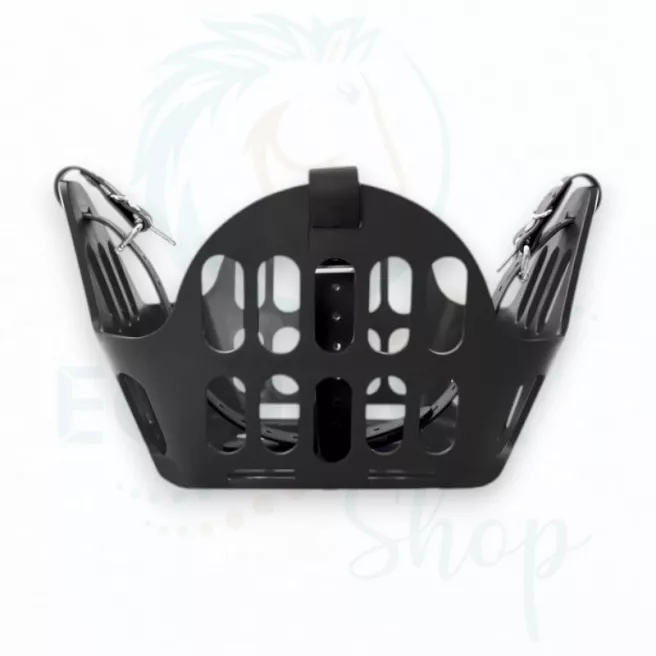 Ce panier de restriction alimentaire est conçu pour être porté par un cheval en prairie afin qu’il puisse rester au grand air avec son troupeau même s’il a une tendance au surpoids ou à l’obésité quand il est à l’herbe H24. Il permet de limiter la quantité d’herbe ingérée et de mettre le cheval « au régime » tout en lui permettant de garder ses interactions sociales.