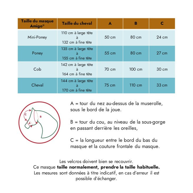 Ce masque taille normalement, il faut choisir la taille habituelle du cheval.