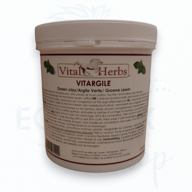 Vitargile par Vital'Herbs est une pâte prête à l'emploi et facile à appliquer composée d'argile verte enrichie d'extraits de plantes.